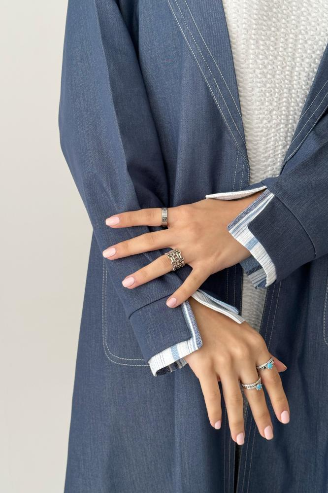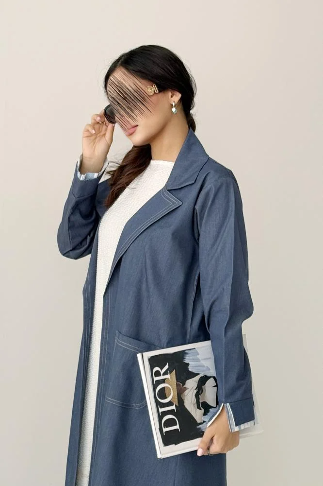 - اسم المنتج: عباية جينز بقصة بليزر راقية